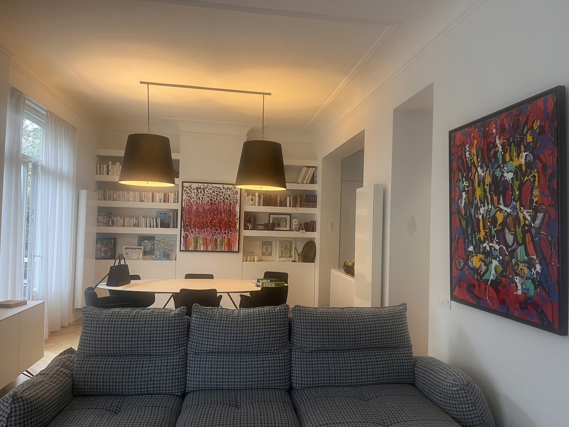 Sur l'une des plus belles avenues d'Ixelles, découverte d'un appartement d'environ 160 m2 totalement rénové avec goût et matériaux luxueux. Sis dans un élégant immeuble ce splendide appartement a été totalement rénové et repensé en 2019. Il offre de vastes réceptions avec une cuisine ouverte totalement équipée, un spacieux et lumineux salon et salle à manger, un bureau, une suite parentale avec sa salle de douche, deux chambres enfants qui se partagent une salle de bains complète. Caractéristiques: Plancher, marbre, nombreux placards sur mesure, 3 chambres de bonnes, deux caves, un box de garage en supplément.