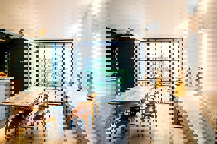 D’une superficie brute d'environ 145 m² le bien offre de majestueuses et lumineuses réceptions, une cuisine ouverte entièrement équipée donnant sur la salle à manger et sur un patio privatif et une suite parentale avec sa salle de douche. Le bien est agrémenté d’un studio avec une cuisine, un bureau et une salle de douche.
