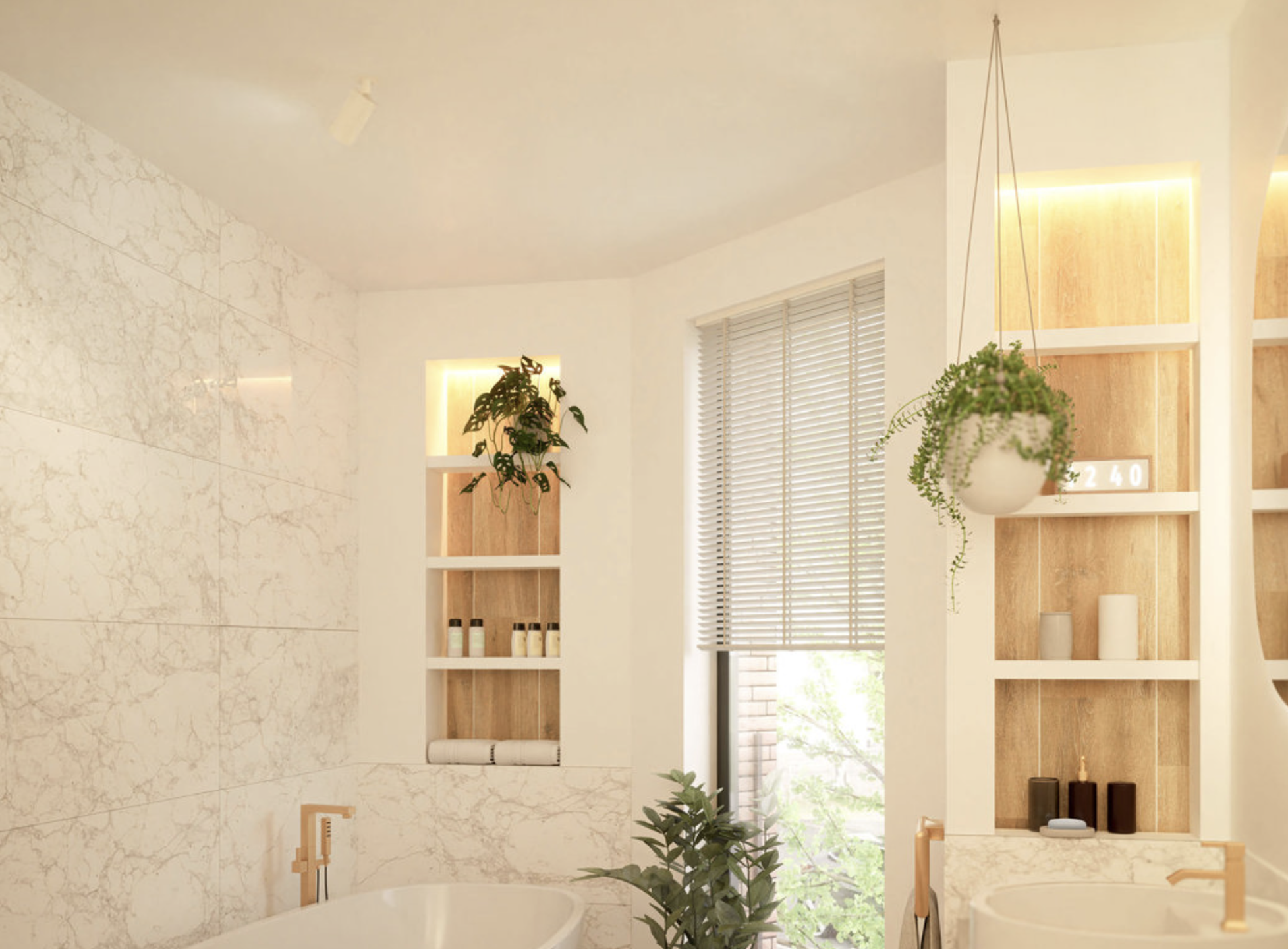 • Hall, partie 2 : chambre 1 (environ 17 m2), salle de bains avec baignoire, WC et 2 lavabos, terrasse, salle de douche avec douche, 2 lavabos et WC, chambre 2 (environ 15 m2) et chambre 3 (environ 11 m2).