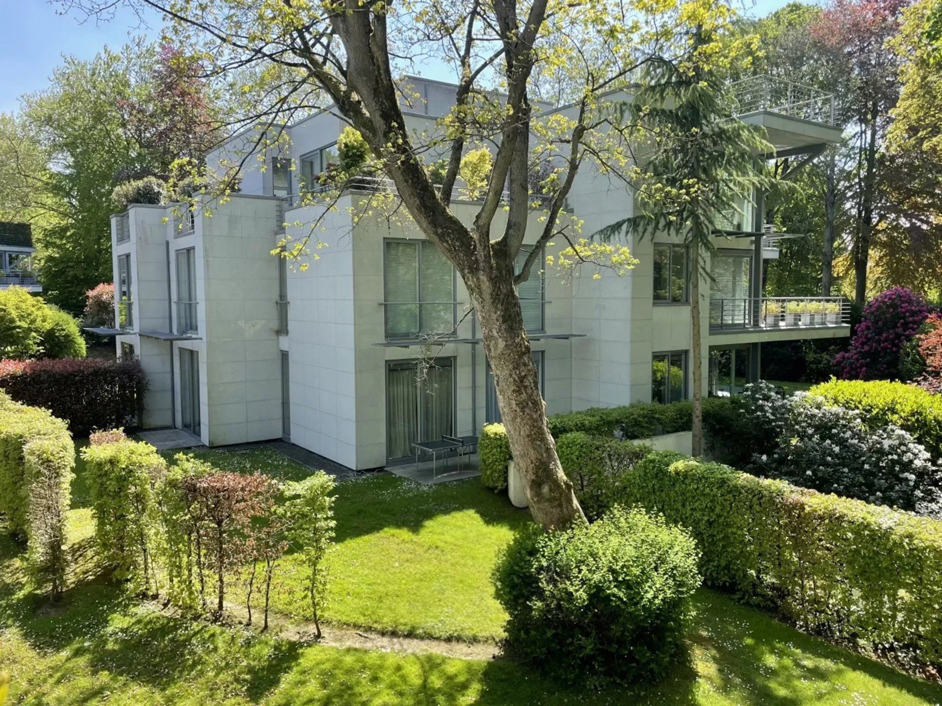Situé au dernier étage d'une petite copropriété signée Marc Corbiau , ce penthouse exceptionnel développe une superficie d’environ 234 m² habitables, accessible par ascenseur privatif et doté d'une vaste terrasse de 150 m² orientée plein sud. Découverte des réceptions lumineuses et de la cuisine séparée est entièrement équipée; le tout s’ouvrant sur la terrasse entourant l’ensemble de l’appartement et prolonge l’espace de vie en parfaite continuité. La chambre principale dispose d’un dressing sur mesure et d’une élégante salle de bains en marbre., Un bureau facilement transformable en seconde chambre, complètent le programme. Caractéristiques: Ascenseur privatif, belle hauteur sous plafond, porte blindée, système d’alarme, châssis double vitrage, solar screens intérieurs, buanderie, chauffage individuel au gaz, cave et trois box fermés ( un double, un simple) PEB D-. Le quartier de l'Observatoire calme et verdoyant est proche des commerces, de restaurants, d'écoles et desservis par des bus et non loin de gare du Dieweg et St Job.