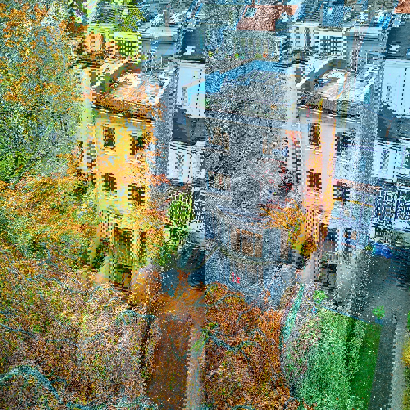 Caractéristiques : sous-sol aménagé, communication entre la partie avant et arrière par le rez et le 1er étage, chauffage central au gaz, belle hauteur sous plafond, accès au bien possible par la Rue Franz Merjay. La maison arrière à un PEB F et les trois autres unités des PEB C-, C- et G.